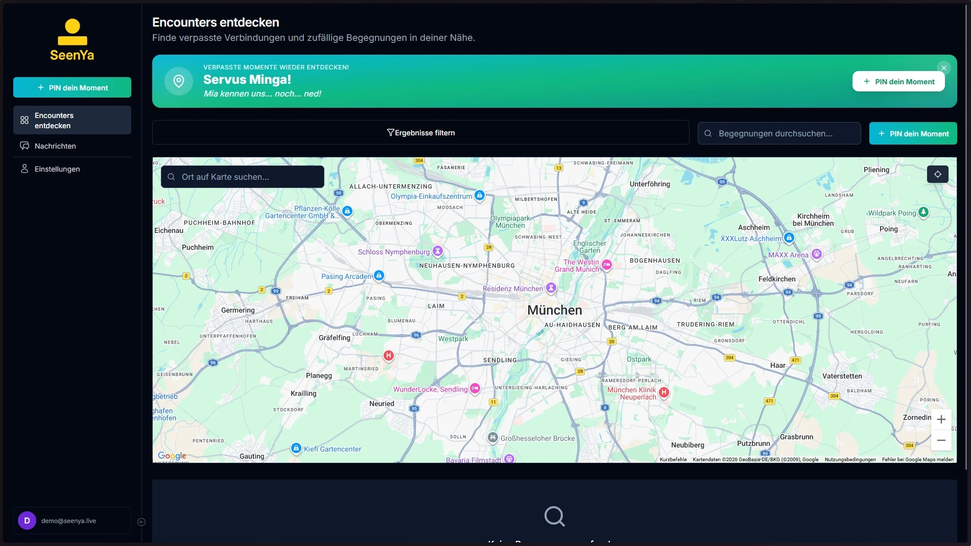 SeenYa ist genau dafür da. Wir verwandeln diese „Was-wäre-wenn“-Momente in echte Connections. Pin einfach den Ort, die Zeit und eine kurze Beschreibung – safe und easy. Wenn die andere Person es erkennt und bestätigt, könnt ihr chatten. Kein Swiping-Marathon, kein Ghosting - nur das echte Leben.